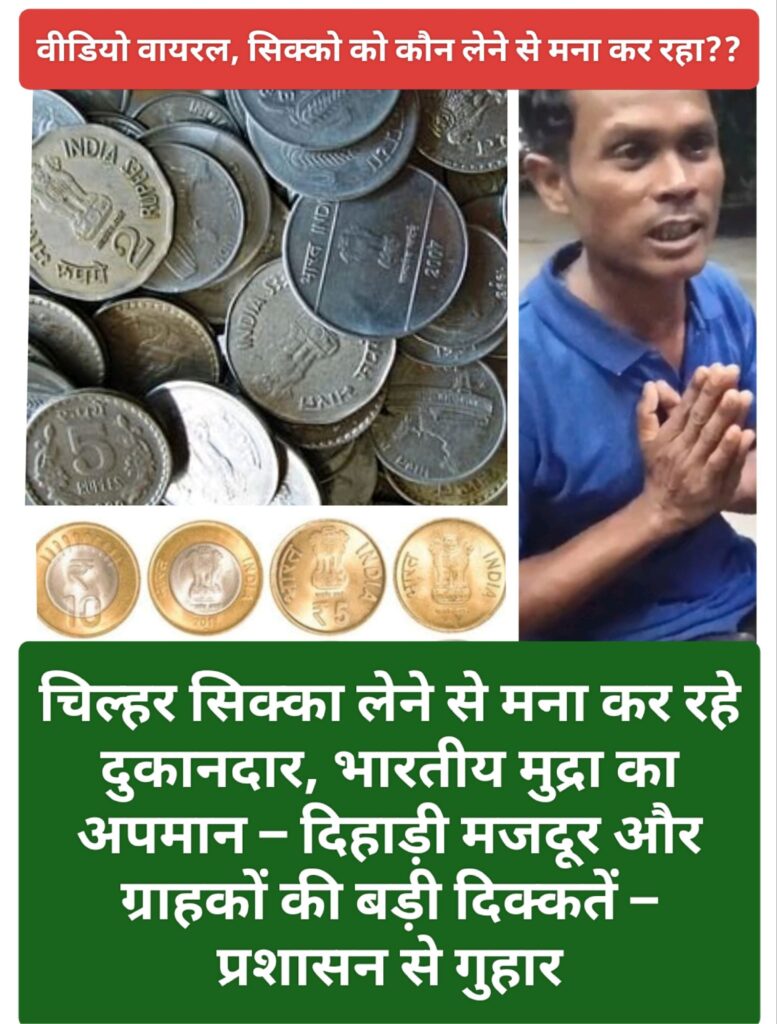 चिल्हर सिक्का लेने से मना कर रहे दुकानदार, भारतीय मुद्रा का अपमान – दिहाड़ी मजदूर और ग्राहकों की बड़ी दिक्कतें – प्रशासन से गुहार