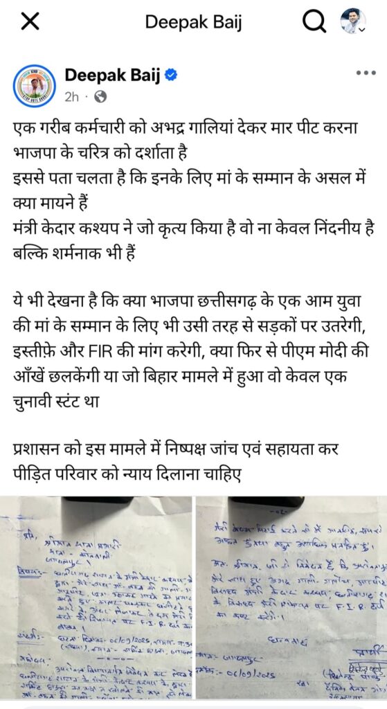 पूर्व मुख्यमंत्री भूपेश बघेल ने लिखा – “यह जनता के सेवक का आचरण नहीं, बल्कि गुंडागर्दी है।”