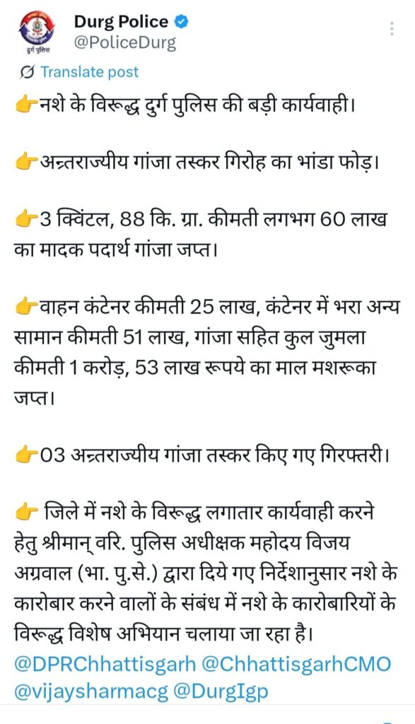 नशे के खिलाफ दुर्ग पुलिस की यह कार्रवाई पूरे प्रदेश में चर्चा का विषय बनी हुई है।