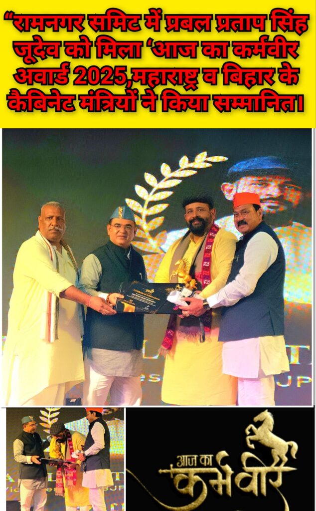 “रामनगर समिट में प्रबल प्रताप सिंह जूदेव को मिला ‘आज का कर्मवीर अवार्ड 2025,महाराष्ट्र व बिहार के कैबिनेट मंत्रियों ने किया सम्मानित।