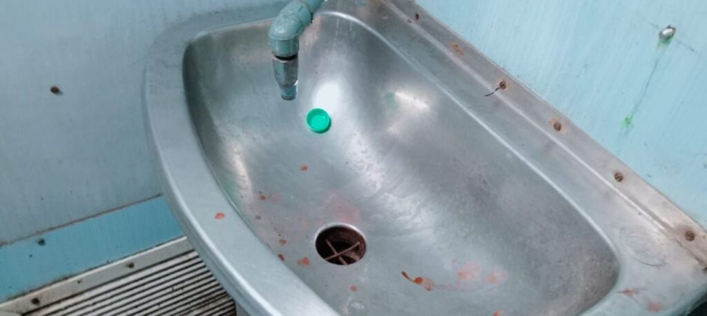 टॉयलेट की स्थिति शर्मनाक — पानी नहीं, सीट टूटी हुई, खिड़की तक गायब।