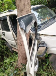 जानकारी के मुताबिक, मड़वारानी से लौटते समय ग्राम पंचायत रिगवार के प्रतिनिधियों की कार तेज रफ्तार में अनियंत्रित हो गई। पहले गाड़ी सड़क किनारे पेड़ से टकराई, फिर खाई में लुढ़ककर नीचे दूसरे पेड़ में जाकर फंस गई।