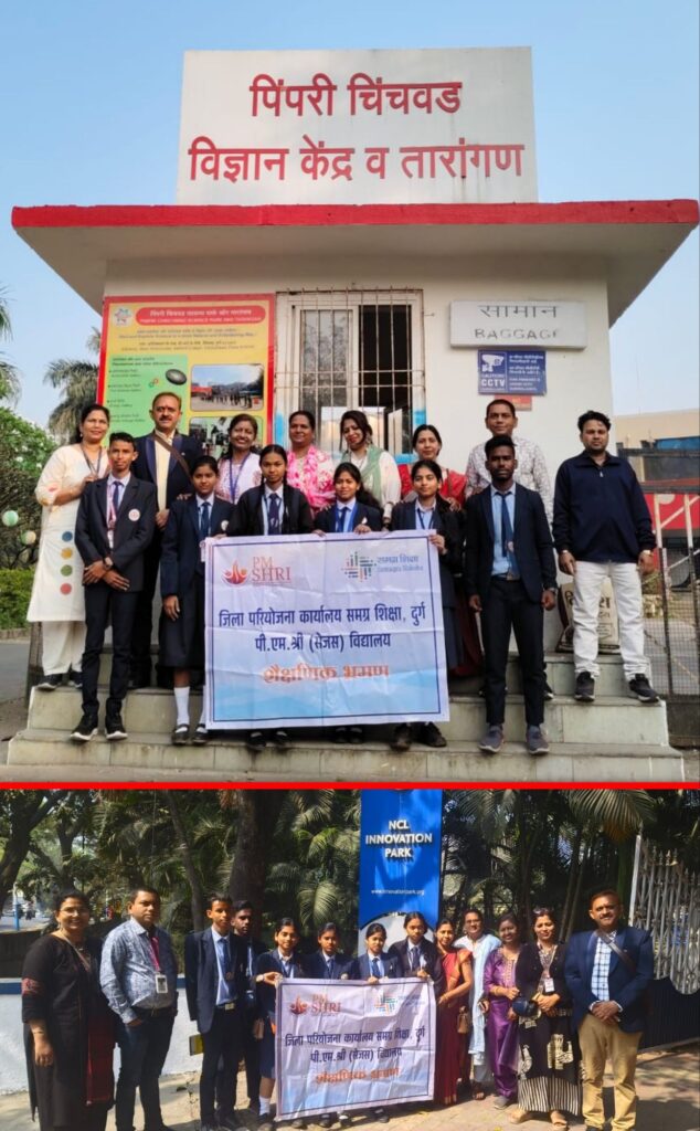 दुर्ग जिले में संचालित पीएम श्री सेजस विद्यालयों के कक्षा दसवीं के विद्यार्थियों एवं विज्ञान समूह के शिक्षकों ने राज्य सरकार द्वारा प्रदत्त आउट ऑफ स्टेट टूर के अंतर्गत महाराष्ट्र के पुणे शहर में राष्ट्रीय स्तर की विज्ञान संस्थाओं और ऐतिहासिक स्थलों का शैक्षणिक भ्रमण किया।