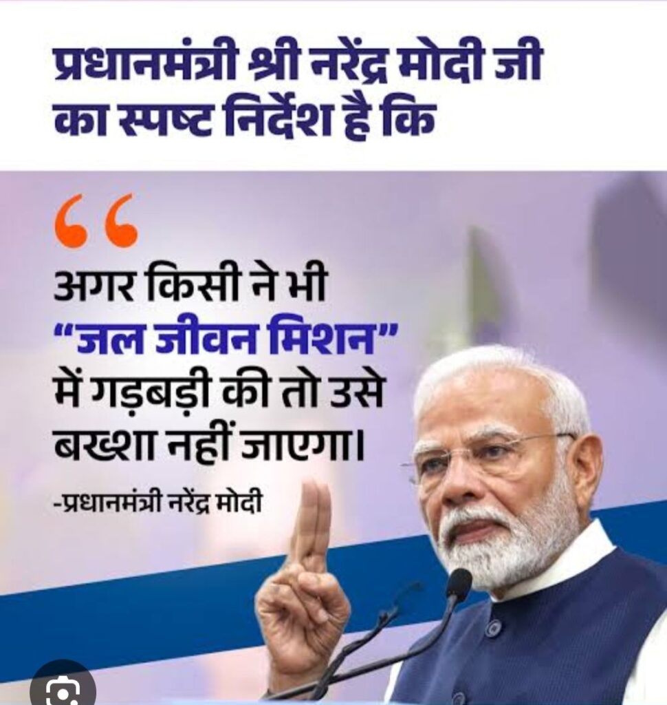 देश के प्रधानमंत्री Narendra Modi ने जल जीवन मिशन को लेकर स्पष्ट निर्देश दिए हैं कि इस योजना में किसी भी प्रकार की गड़बड़ी या भ्रष्टाचार बर्दाश्त नहीं किया जाएगा। उन्होंने साफ कहा है कि यदि किसी ने “जल जीवन मिशन” में अनियमितता की, तो उसे किसी भी हालत में बख्शा नहीं जाएगा और सख्त कार्रवाई की जाएगी।